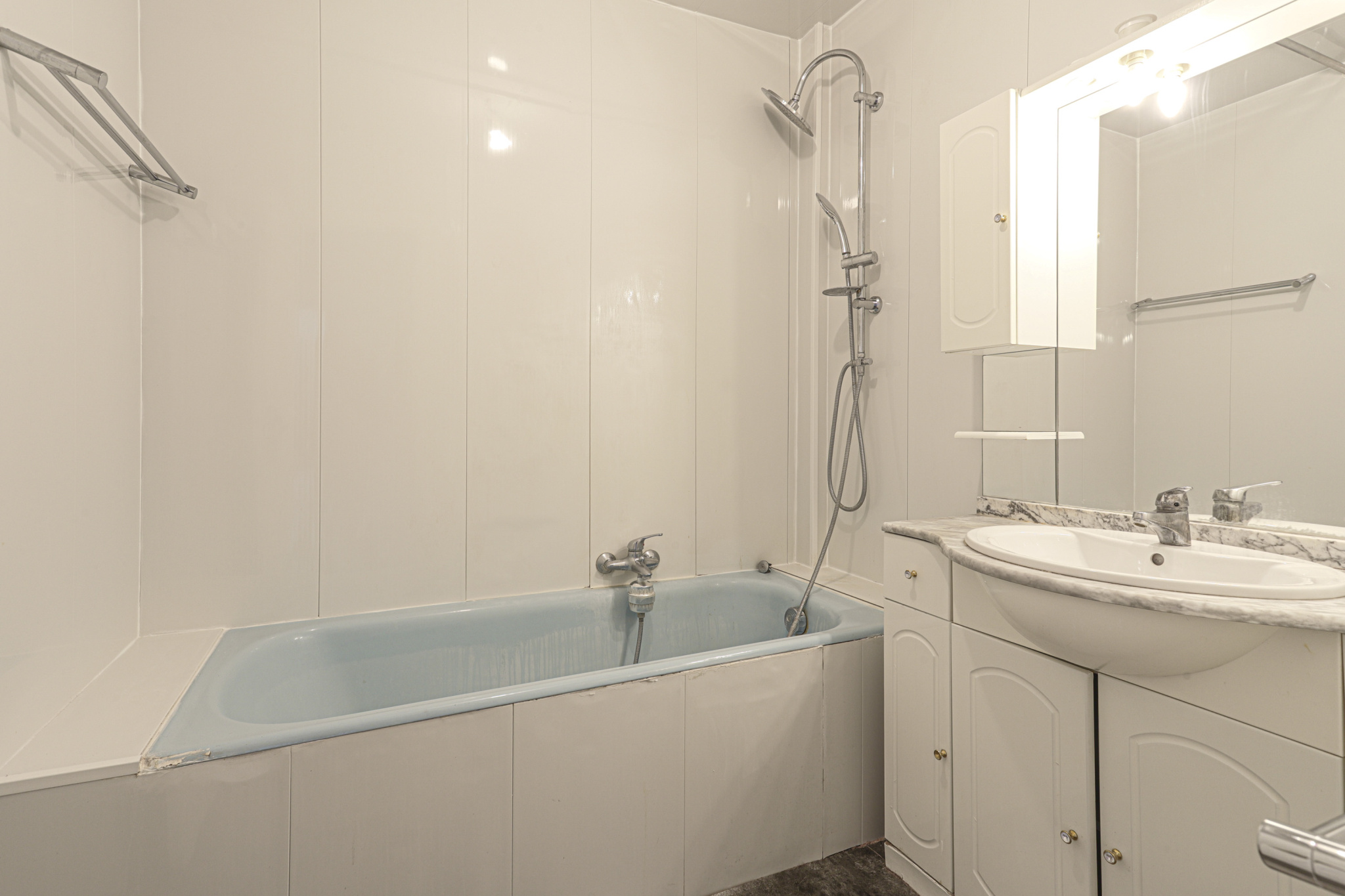 L’appartement se compose d’une entrée avec couloir desservant un séjour lumineux, une cuisine indépendante, une belle chambre, une salle de bains ainsi qu’un WC indépendant.