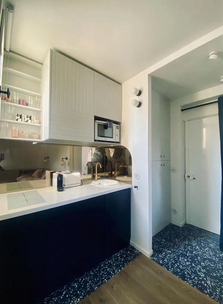 Situé au dernier étage d’un élégant immeuble du XVIIIᵉ siècle en pierre de taille, parfaitement entretenu et doté d’un gardien, ce charmant studio de 18,42 m² (dont 16,3 m² Carrez) séduit par son cachet et son emplacement.