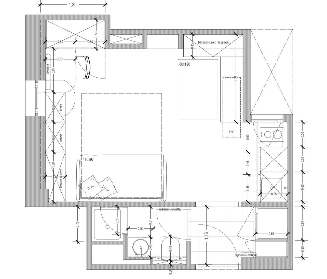 Accessible par ascenseur jusqu’au cinquième étage, il comprend une entrée, un agréable séjour avec cuisine équipée et une salle de douche avec WC.