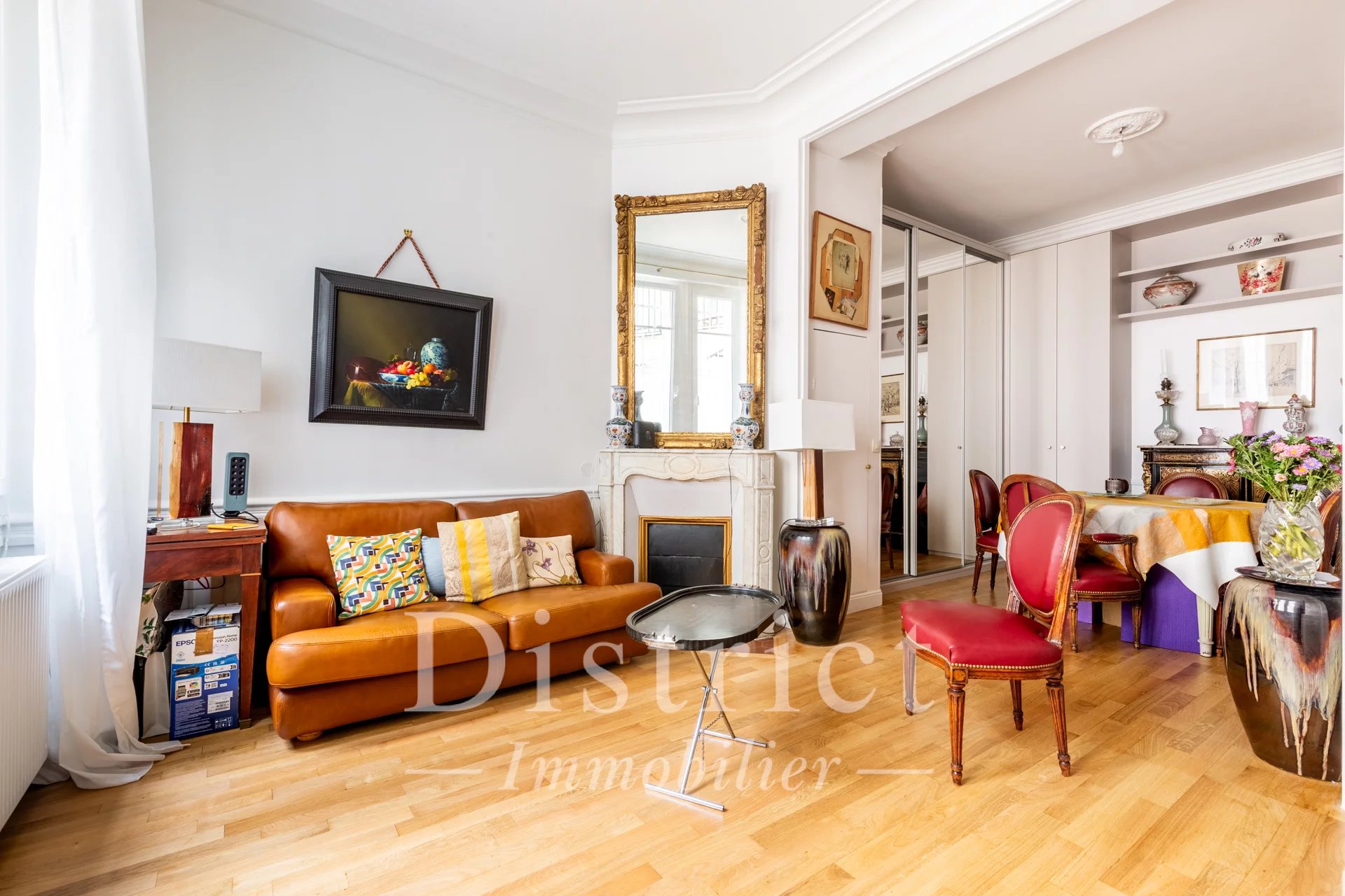 Le charme de l’ancien avec 3,20 m de hauteur sous plafond, parquet, moulures et cheminée.
