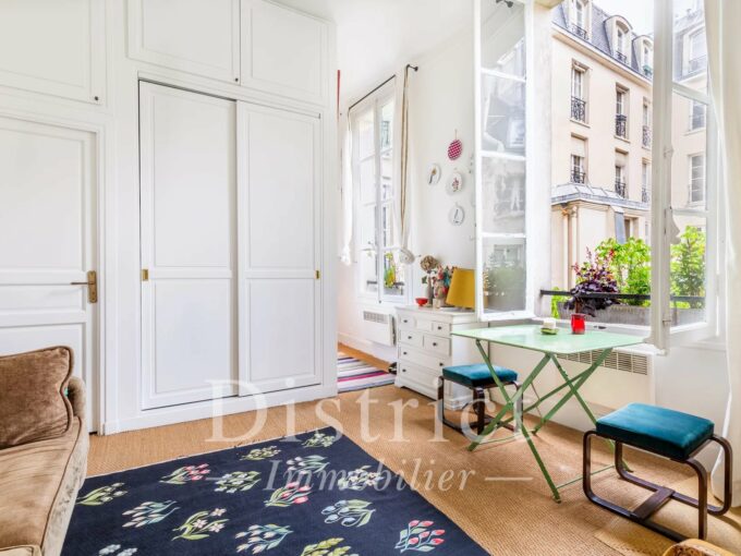 Triangle d’Or – Appartement meublé de 75m² au dernier étage avec ascenseur et vues dégagées sur les toits de Paris.